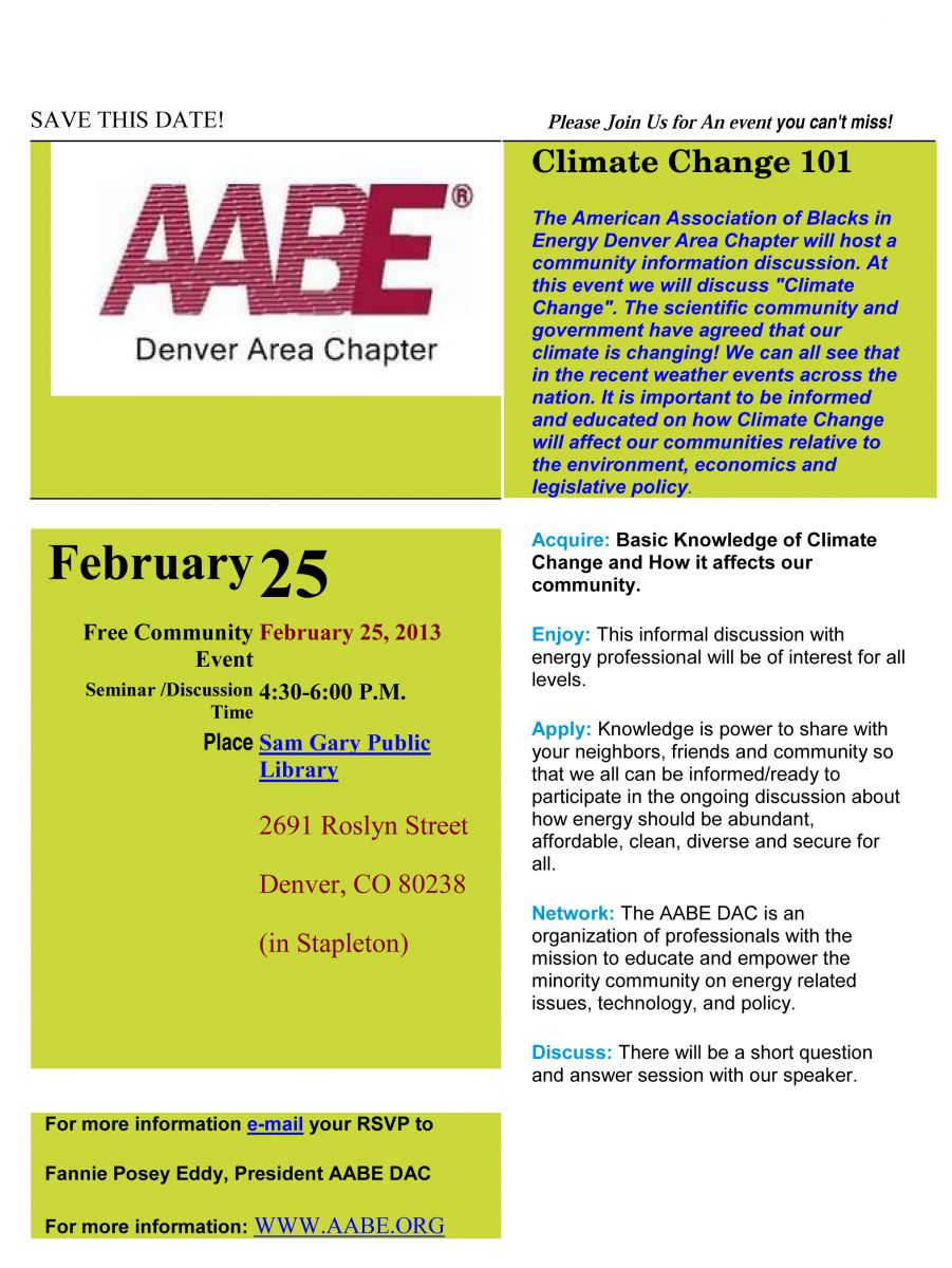The Denver Area Chapter recently hosted a workshop on Climate Change. Our speaker was Mr.Jeff Hohensee, Dir Strategic Partnerships for the Alliance for a Sustainable Colorado. Click here to see a copy of his presentation.